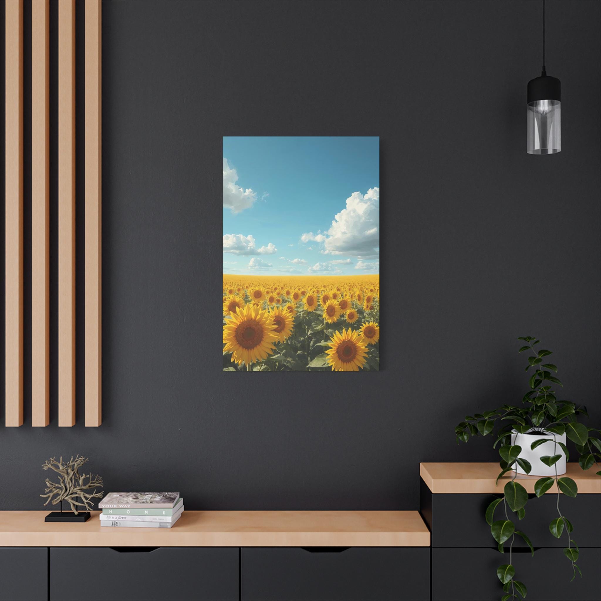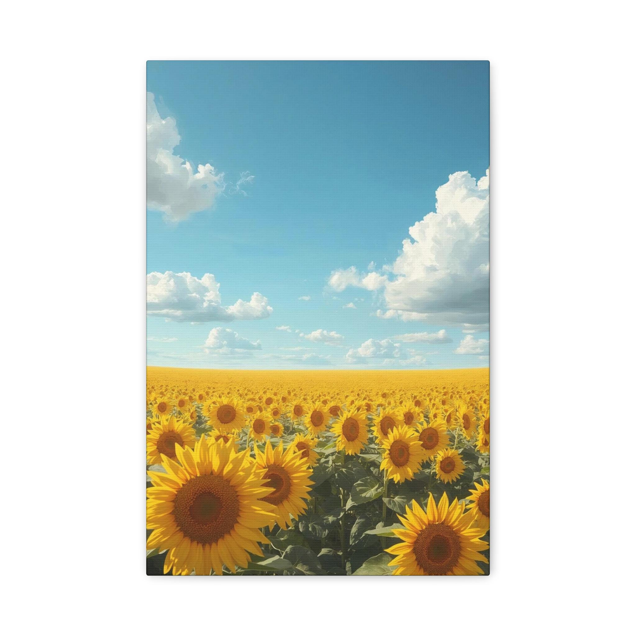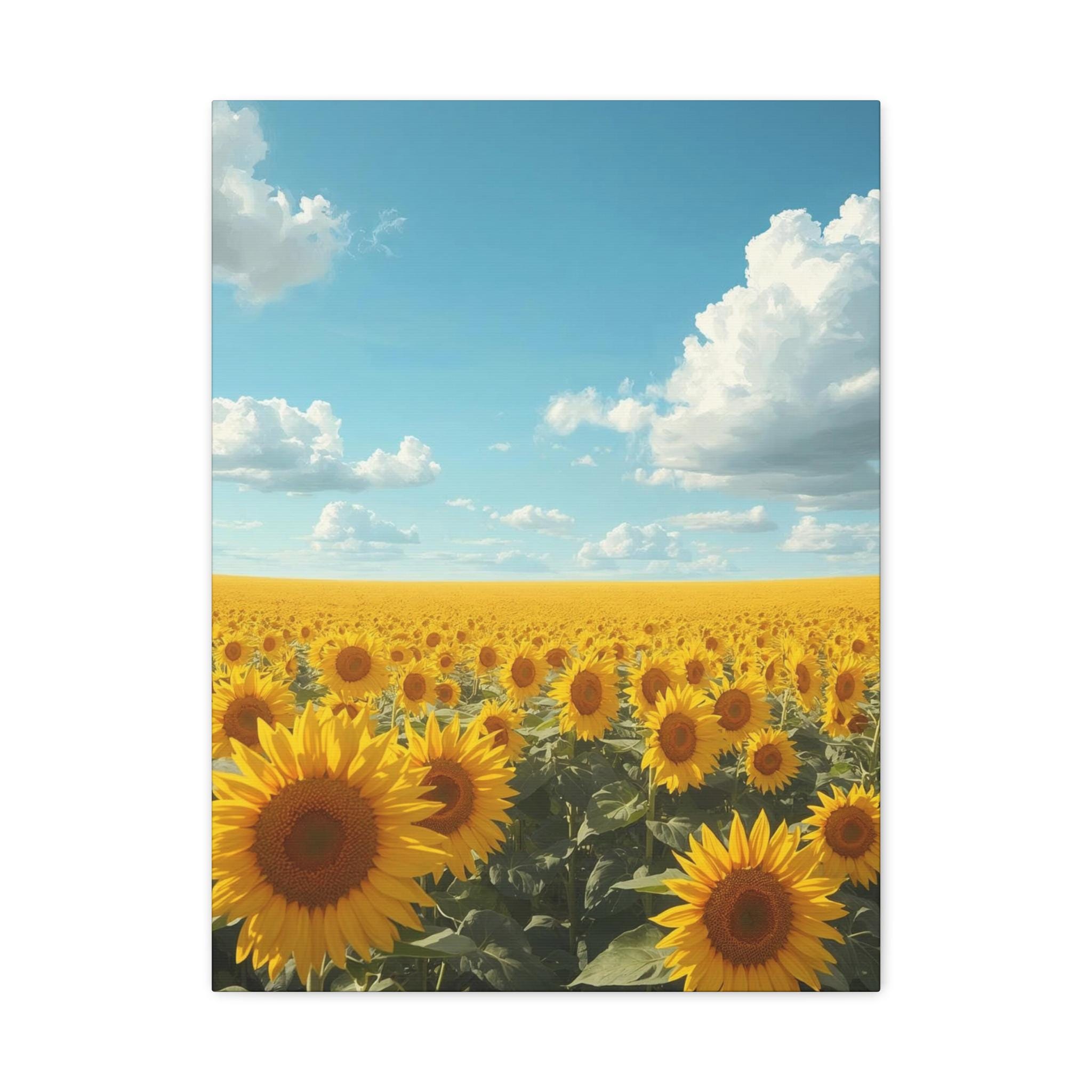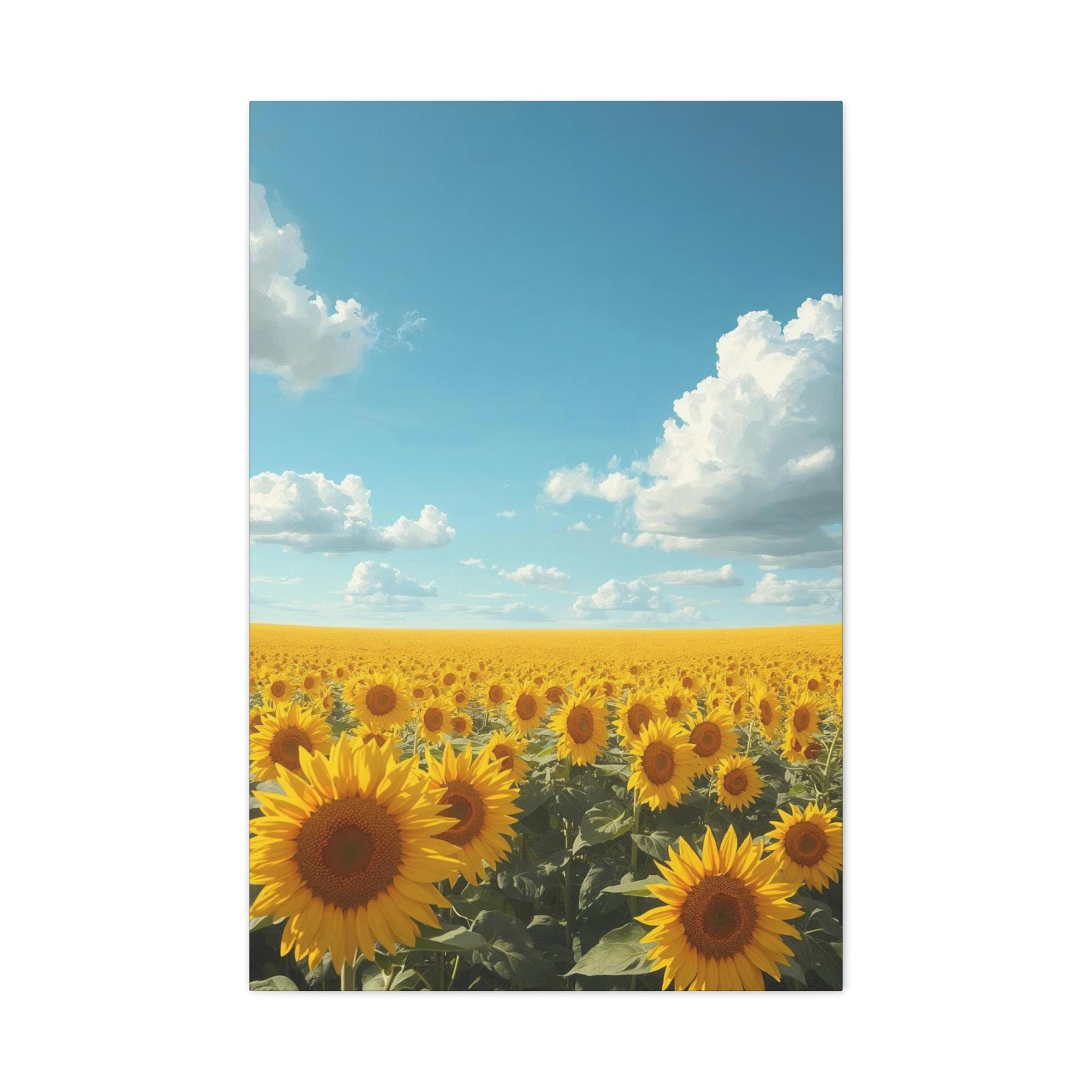 Bask into the eternal glow of summer with this Endless Sunflower Field canvas art. Capturing a vast horizon of vibrant yellow blooms under a crisp blue sky, this piece brings a sense of warmth, joy, and open space to any room.