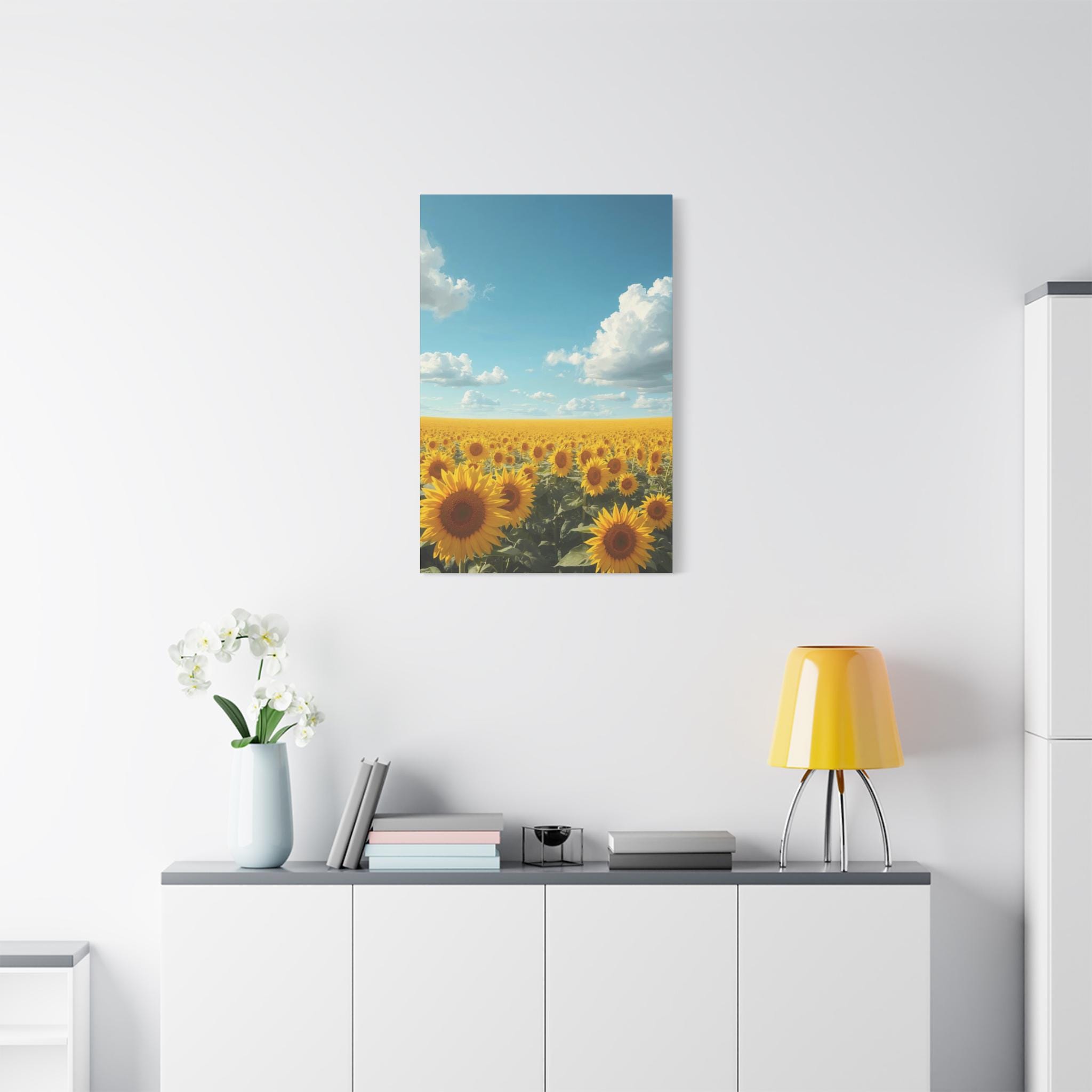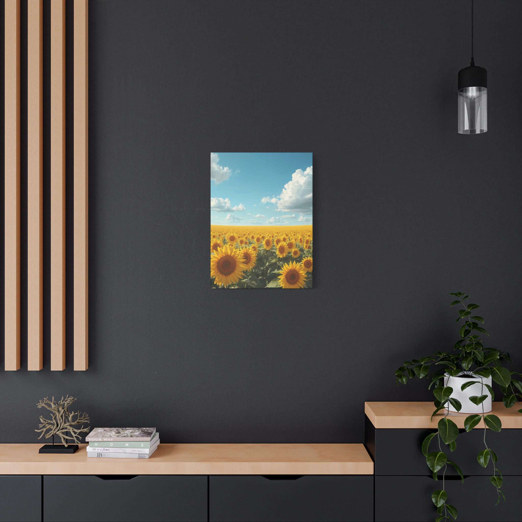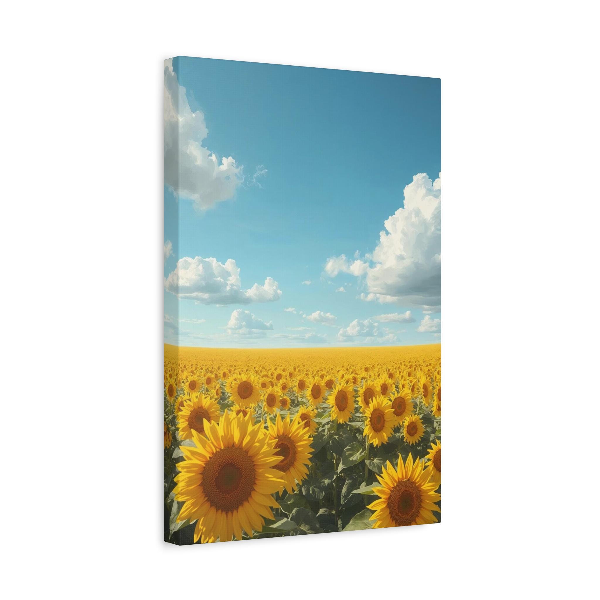 Bask into the eternal glow of summer with this Endless Sunflower Field canvas art. Capturing a vast horizon of vibrant yellow blooms under a crisp blue sky, this piece brings a sense of warmth, joy, and open space to any room.