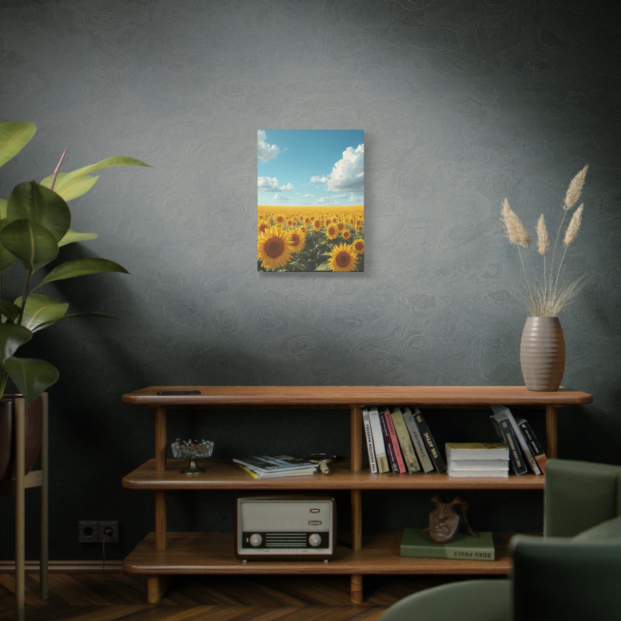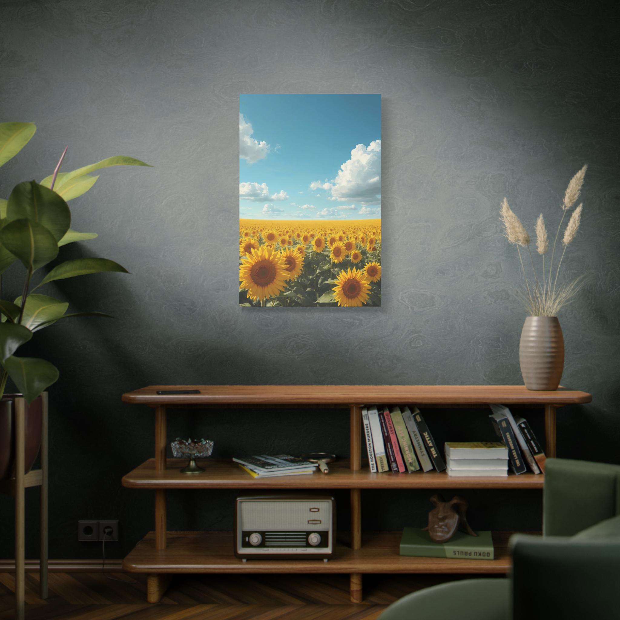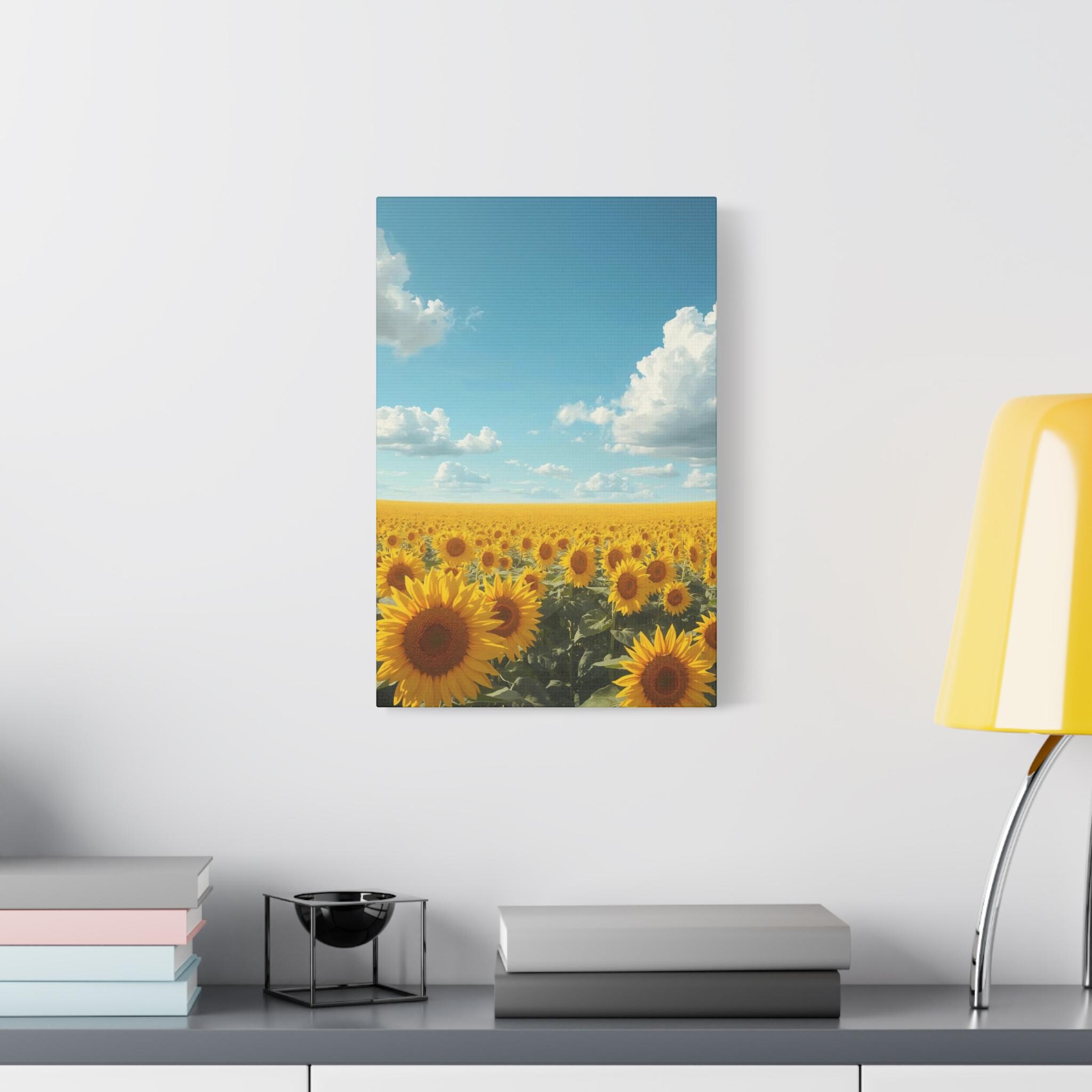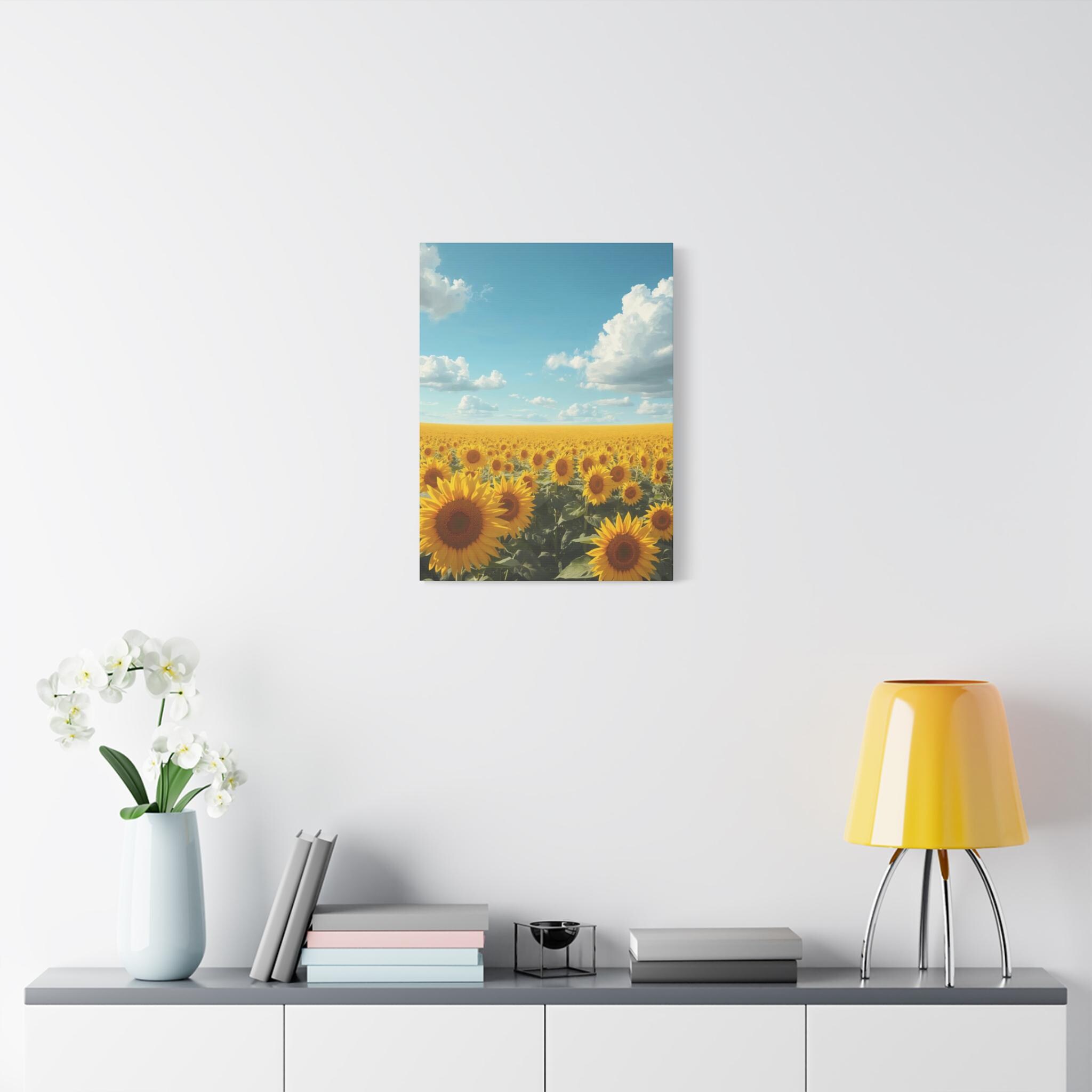 Bask into the eternal glow of summer with this Endless Sunflower Field canvas art. Capturing a vast horizon of vibrant yellow blooms under a crisp blue sky, this piece brings a sense of warmth, joy, and open space to any room.